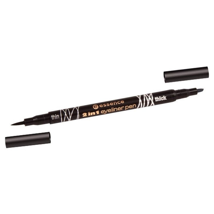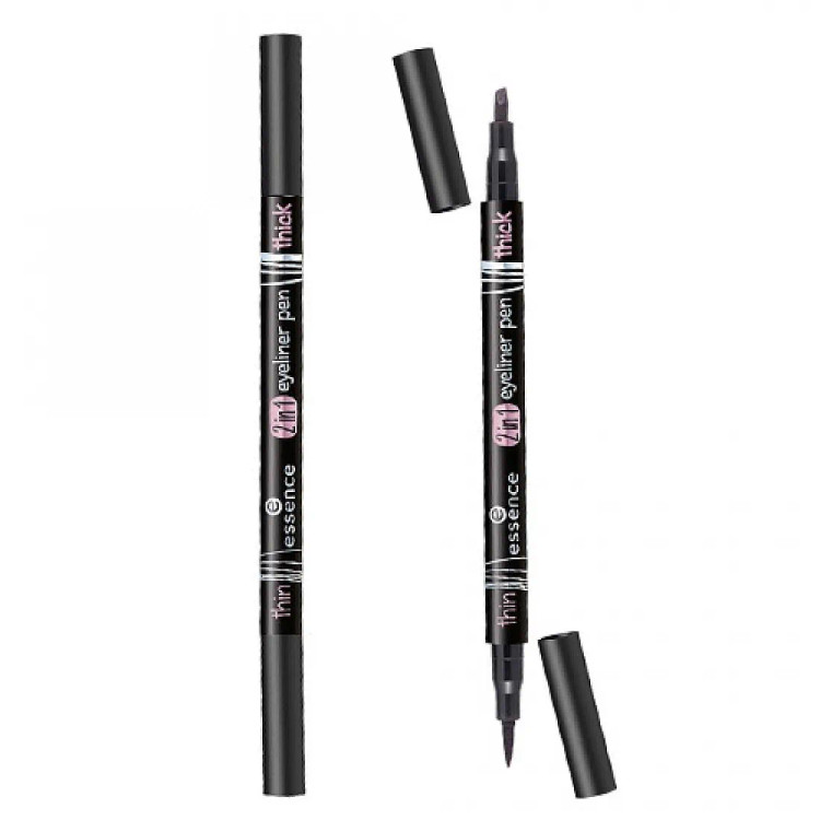 قلم نازک خط چشم ماژیکی 2 در 1 اسنس به شما کمک میکند تا بتوانید خطوط ظریف و کشیده ایجاد کنید. سر ضخیم قلم در طرف دیگر، خط چشمهایی پهن و سبکها و آرایشهای ایجاد میکند.