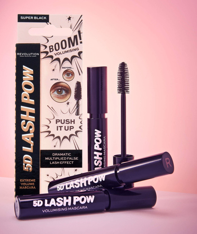ریمل حجم دهنده و بلند کننده ۵ بعدی رولوشن (اصل) مدل 5D Lash Pow حجم ۱۲.۲ میل Makeup Revolution 5D Lash Pow Mascara 12.2ml Super Black
