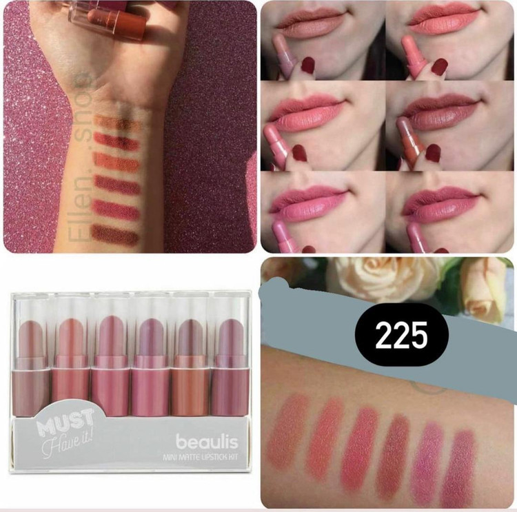پک رژ لب مینی سایز بیولیس (اصل) 6 تایی رنگ 225 Beaulis Mini Matte Lipstick Kit