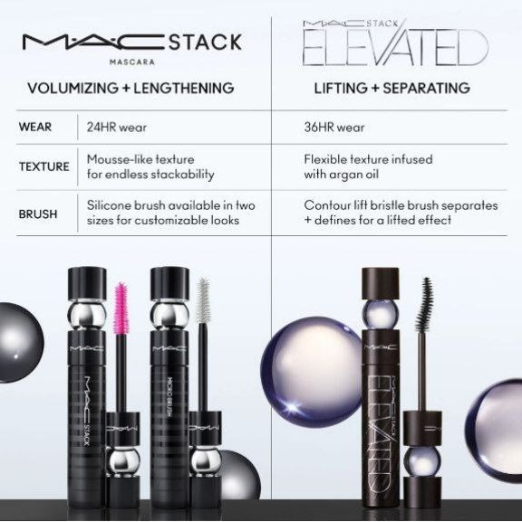 نکات دیگری که باید بدانید: ریمل MACStack Elevated دارای یک برس منحنی دو طرفه با نوک دقیق است که مژه ها بدون جمع شدن به وضوح بلند می شود و حجم می گیرند. این فرمول قابل ساخت( امکان افزودن لایه لایه)، 91 درصد مشتق شده از طبیعت* که دارای روغن آرگان است. همچنین ضد عرق و رطوبت، ضد لک و ریزش و ضد پوسته پوسته شدن است.