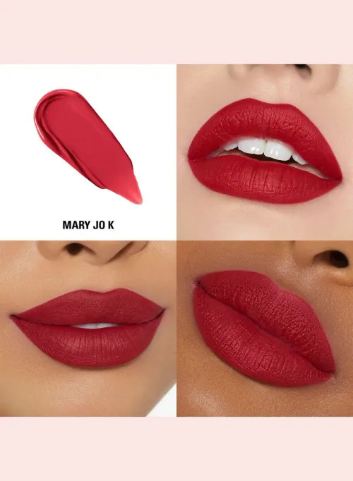 رژ لب مایع مات Kylie Cosmetics در رنگ محبوب Mary Jo K (شماره ۴۰۲)، یکی از کلاسیکترین و پرطرفدارترین رنگهای قرمز این برند است. این محصول با بافتی سبک و رنگدانههای غلیظ، پوششی کاملاً مات و یکنواخت روی لب ایجاد میکند و جلوهای جسورانه و ماندگار به لبها میبخشد. رنگ قرمز گرم این مدل برای تمام تناژهای پوستی مناسب بوده و انتخابی ایدهآل برای آرایشهای رسمی و شبانه است.